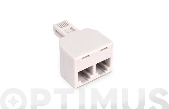 Adaptador telefónico RJ11 doble (1 macho/2 hembras). Ideal para conectar varios terminales telefónicos, faxes o módems en una misma base conconectores RJ11.