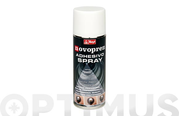 ADHESIVO NOVOPREN SPRAY REMOVIBLE Reposicionadle. Para uniones temporales. Apropiado para uniones de múltiples materiales como papel, cuero,cartón, tejidos, fibra de vidrio, y en general aquel materla que no suponga un peso elevado. 400 ml.