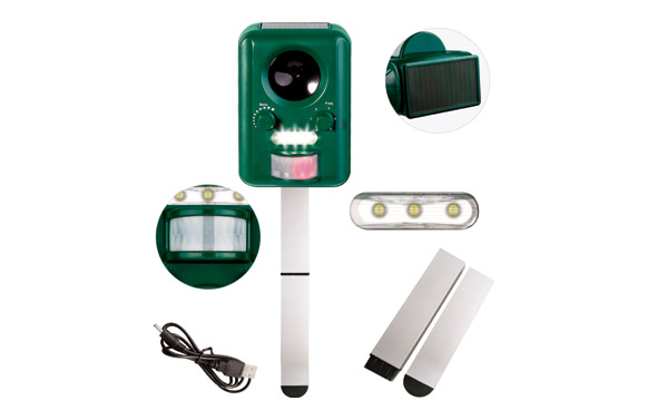 Mantiene su entorno libre de perros, gatos, aves, y otros animales. Gracias a su detector de movimiento, registra el paso de los animales yenciende automáticamente las ondas de ultrasonido y, opcionalmente, un potente flash LED (muy útil por la noche), haciendo huir al animal.