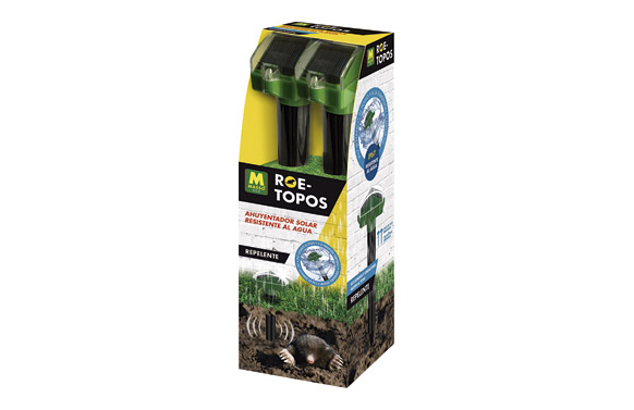 El repelente solar para topos emite unas ondas sonoras y vibraciones através de su tubo que imitan el sonido de las señales de peligro pararoedores y topos y los aleja de la zona. Estanco al polvo y a la inmersión temporal del agua. Resiste la inmersión completa a 1m durante 30 m.