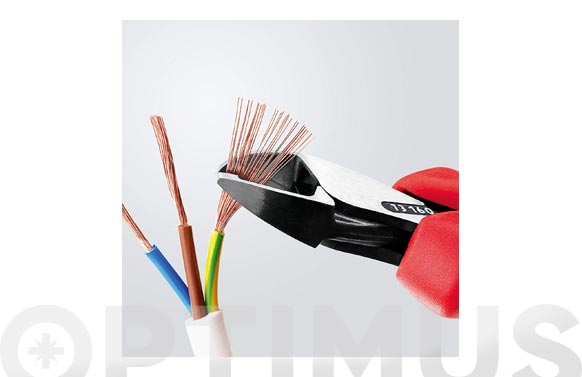 Potente, ligera y universal. Corta desde los hilos más finos hasta cables conductores y cuerda de piano. Articulación machihembrada: máximaestabilidad con un reducido peso. Se requiere poco esfuerzo en el corte gracias a la perfecta coordinación del ángulo de corte y la proporción de las palancas. 40% de ahorro en fuerza en comparación con alicates de corte diagonal convencionales de la misma longitud. Gran aperturapara cables gruesos. Corte preciso incluso con hilos finos de Cu. Ejede articulación con alojamiento doble para un esfuerzo duro y consistente. Acero al cromo vanadio de alto rendimiento, forjado, templado alaceite en varias etapas. Capacidad de corte alambre semiduro (diámetro) 3,8 Ø mm. Capacidad de corte alambre duro (diámetro) 2,7 Ø mm. Capacidad de corte alambre tipo cuerda de piano (diámetro) 2,2 Ø mm. Capacidad de corte alambre blando (diámetro) 4,8 Ø mm. Capacidad de corte cable de cobre, multifilar (diámetro) 12 Ø mm. Longitud 160 mm.