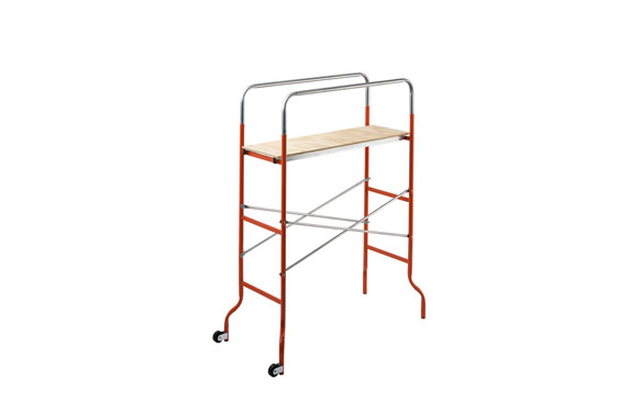 F0005, fabricado en tubo de aceros de 20 mm, 179x144x62 cm, altura máxima de la plataforma 137 cm. Capacidad maxima 120 kg, peso 16,6 kg. Plataforma de madera.