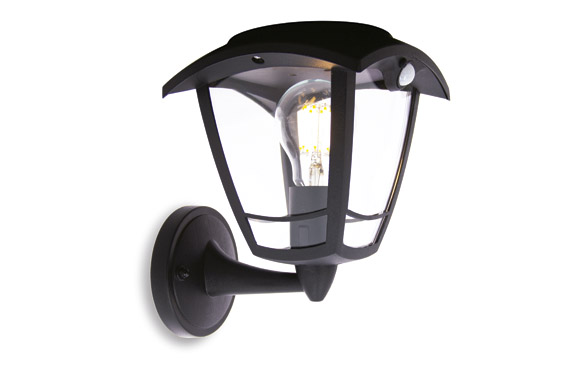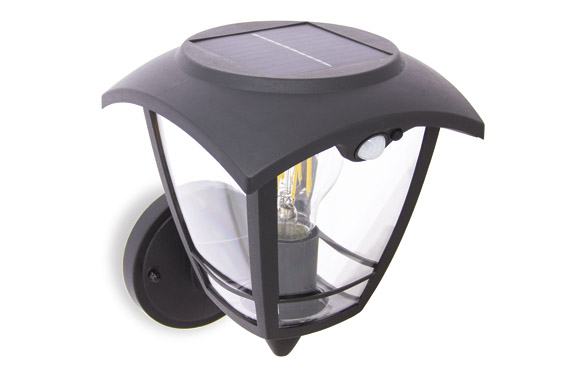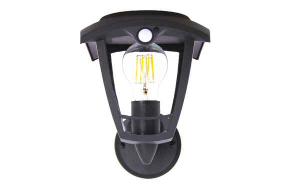 APLIQUE SOLAR NEGRO RETRO LED IP44 SENSOR DE MOVIMIENTO – BOMBILLA 400 LM 3000K INCLUIDA