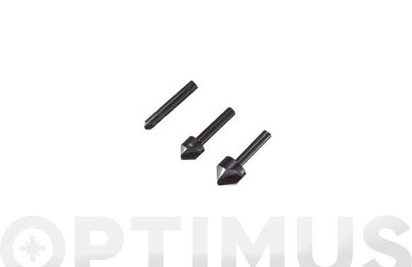 3 avellanadores de acero. Para madera, plásticos y metales no férreos.Diámetro ø 6, 12, 16 mm. Ángulo 45°. Vástago ø 6 mm.