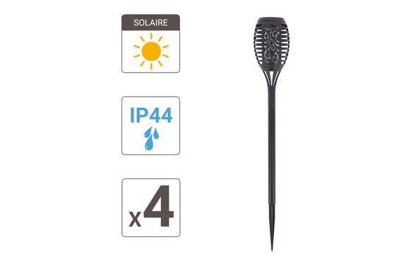 BALIZA SOLAR LED DECORATIVA IP44 – EFECTO LLAMA PACK 4 UNIDADES