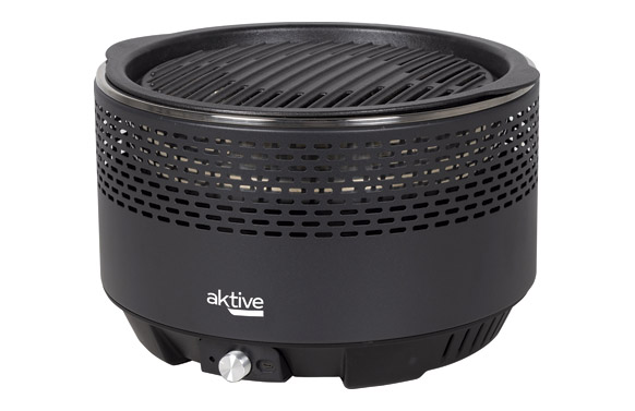 BARBACOA SOBREMESA SIN HUMO. Diámetro 31 cm, Fabricada con acero inoxidable con sistema de ventilación y recipiente extraible con rejilla para el carbón. Con botón para regular la temperatura y sistema de ventilación.