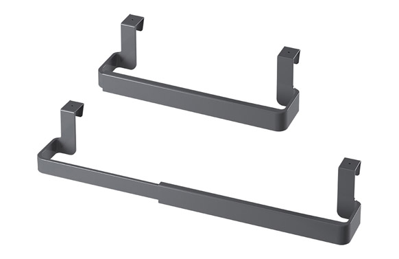 Barra cuelgatrapos extensible. Barra telescópica se puede extender de 24 a 40cm para ajustar al ancho deseado. Se puede colocar tanto en el interior como en el exterior de las puertas de los armarios. No necesita instalación, diseñado para colocar sobre las puertas de los armarios. Sin tornillos, sin agujeros. Plástocp ABS gris oscuro.