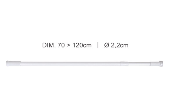 Barra ducha extensible 70 – 120 cm. Ø 2,2 cm, aluminio lacado color blanco.