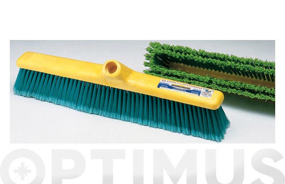 Uso exterior / interior. Recomendado para terrazas, suelos poco rugosos y de epoxi. Soporte: Polipropileno para mango con rosca ø28 mm con canal interior para no levantar polvo. Fibra: PVC ø0,55 mm despuntado.Largo: 500 mm. Ancho: 58 mm. Salida fibra: 70 mm. Código QF+mango: 9607411