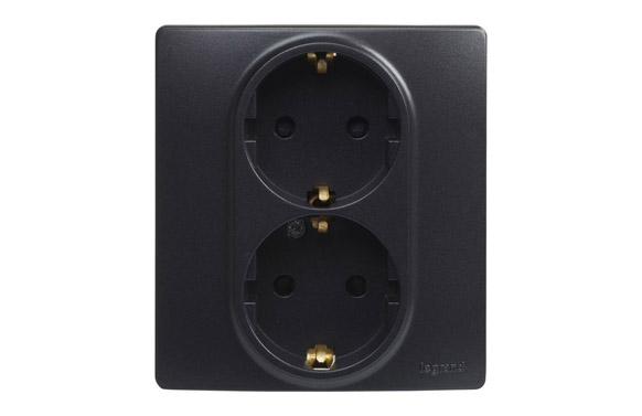 BASE ENCHUFE DOBLE 2P+T NEGRO – SERIE NILOE