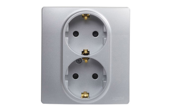 BASE ENCHUFE DOBLE 2P+T PLATA – SERIE NILOE