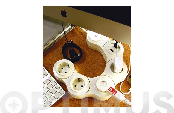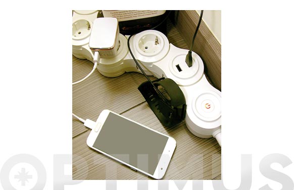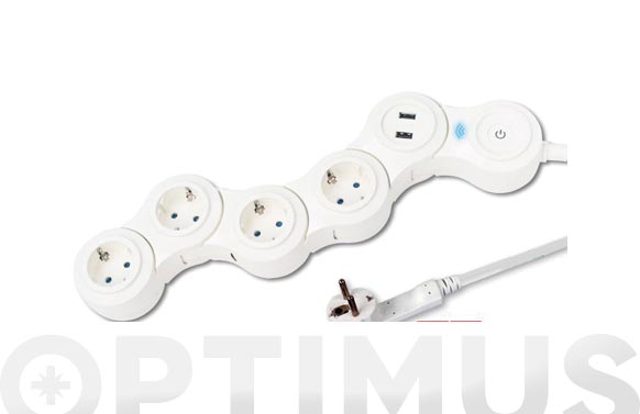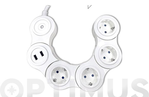 BASE MULTIPLE FLEX Su disaño permite que se adapta a cualquier superficie. 4 tomas de 16A 3500W. 2 tomas USB 2,4A. Wifi 2,4 Ghz. Compatiblecon Amazon «Alexa» y «Google Assistant». 1.5m de cable 3×1,5mm.