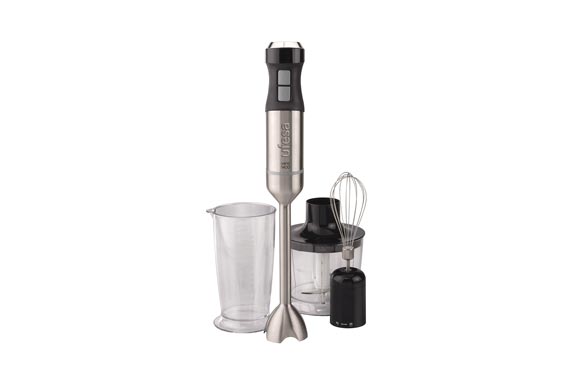 Potencia: 1400 W. regulador 20 velocidades. Varilla XL. Función turbo.Diseño antisalpicaduras. 4 cuchillas del alta resistencia. Incluye vaso medidor, emulsionador y picador de 0.5L.