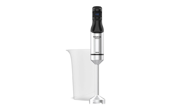 1500W. Stepless Technology: regulador de potencia variable en el pulsador. Cuchillas de acero inoxidable de alto rendimiento. Diseño ergonómico con agarre soft-touch. Fácil montaje de la varilla. Varilla en acero inoxidable de alta resistencia. Diseño de la campana antisalpicaduras. Batidora y accesorio libres de BPA. Accesorio y varilla aptos para lavavajillas. Incluye: Vaso medidor.