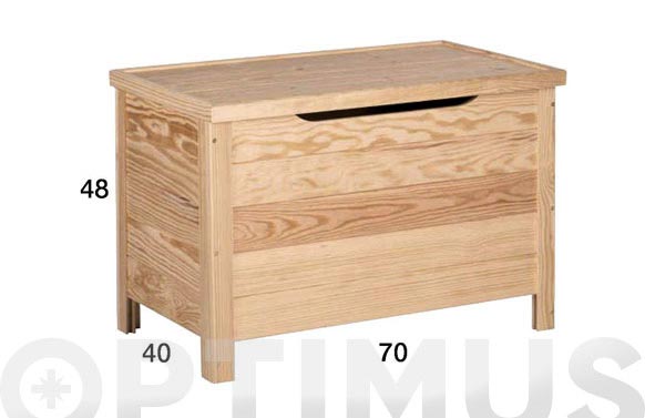 Fabricado en pino natural sin barnizar. Con cadena para apertura y cierre. Resiste 50 kg. Capacidad 85 L