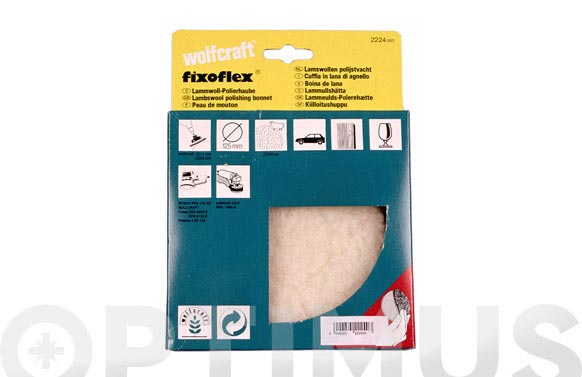 1 boina de pulir de lana de cordero adhesivo. Taladradoras y lijas para lijadora roto-orbital. Para discos abrasivos Ø 125 mm con tejido adherente. Para abrillantar y pulir pinturas, metales no férricos y acerofino con pastas de lijar y pulir. Cara posterior recubierta de terciopelo. Diámetro ø 125 mm.