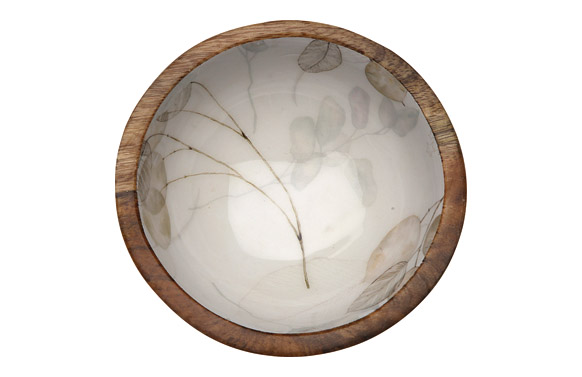 BOL MADERA DECORADA ESMALTADO – 13CM-HOJAS