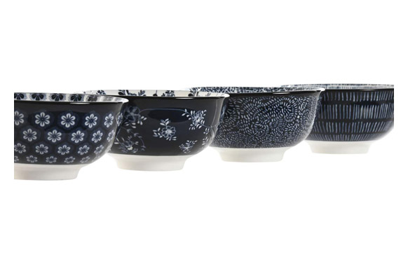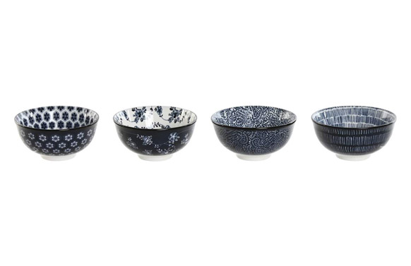 Set 4 boles, porcelana, decorado surtido color azul, Ø 11,5 cm, apto para lavavajillas y microondas.