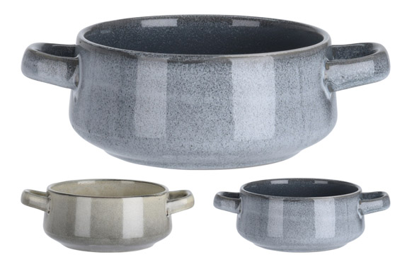 BOL SOPA STONEWARE. Ø14 cm. 75 cl. Surtido: gris, azul y beige. Con asa 20 cm, altura 7 cm.
