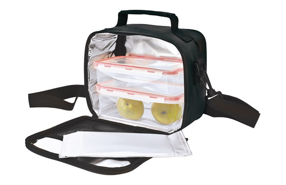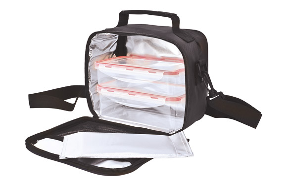Bolsa térmica para transportar tu comida. Este porta-alimentos es muypráctico, con 2 contenedores y un bolsillo interior de rejilla para laservilleta, cubiertos, etc. y otro exterior para colocar el monedero,las llaves o la tarjeta de transporte. Muy ligera íPesa solo 1/2 kg!Dispone, además, de asa de mano con refuerzo y cinta bandolera extraible y regulable. Doble cremallera para una fácil y más cómoda aperturade la bolsa. Inlcuye: 2 contenedores herméticos de 600 ml y 800 ml depolipropileno y libres de BPA. Bandeja separadora de alimentos fríos ycalientes.