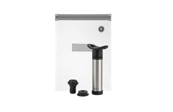 «Acero inoxidable.2 tapones de vac¡o de silicona.Perfecta preservaci¢n del vino. Evita la oxidaci¢n.Incluye 1 bolsa de vac¡o de 21 x 22 cm de regalo.Adaptador de silicona para válvula de vac¡o.»