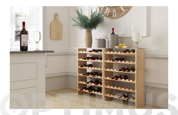 Capacidad para 16 Botellas. Apilable en pino macizo De 17mm de grosorsin barnizar, Dimensiones : 68,8X30X27cm