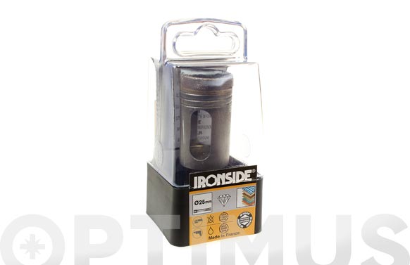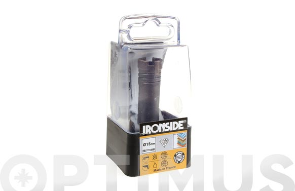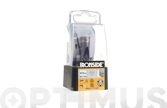 BROCA CORONA DIAMANTE. CABEZA CON 2 SEGMENTOS DE DIAMANTE. GARGANTA DEEXTRACCIÓN. MANGO EXAGONAL. PERFORACIÓN DE PORCELANATO GRADO 4 Y 5. AGUJEROS PRECISOS Y SIN ROTURAS. TAMBIÉN UTIL PARA TODO TIPO DE AZULEJOS. TERRACOTA. GRES PORCELÁNICO. GRES ESMALTADO Y MARMOL. USO CON AMOLADORA: UTILIZAR CON PORTABROCAS SIN LLAVE IRONSIDE ESPECIAL AMOLADORASREFERENCIA 9693004. CAPACIDAD: Ø1,5 A 13 MM. ROSCA M14. UTILIZAR SINAGUA. USO CON TALADRO: UTILIZAR UN POCO DE AGUA PARA UNA PERFORACIÓN MAS EFICAZ.
