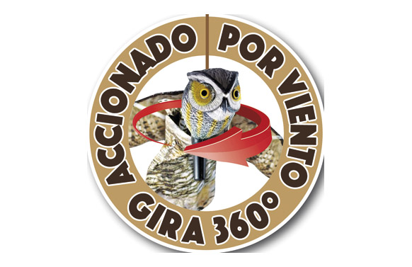 Ahuyentador eólico contra pájaros. No daña los animales. El búho, diseñado y fabricado en PVC a tamaño real, dispone de un mecanismo interior que le permite mover la cabeza gracias a la acción del viento. La rotación de su cabeza (360º), su color natural y la luz reflejada en losojos, le proporciona un gran realismo y consigue así disuadir a los pájaros. El búho es un depredador de aves y éstas al verlo abandonan ellugar. Se recomienda su uso para proteger balcones, jardines, terrazas, frutales, céspedes recién plantados, embarcaciones, etc. Gracias asu diseño, también se puede utilizar como parte de la decoración de jardines y balcones. El búho no necesita pilas ni electricidad.