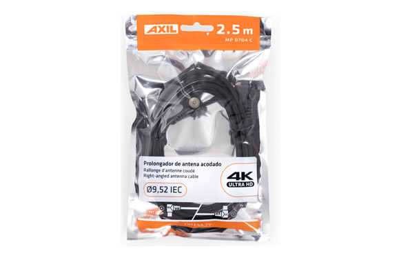 CABLE ANTENA CONECTORES ACODADOS 2,5M NEGRO