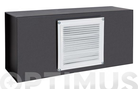 Diseñada para su instalación empotrada en pared y camuflada detrás dela rejilla de ventilación que lleva incorporada en su frontal. Sistema de apertura mediante llave de puntos. Requiere obra para su instalación. Dimensiones 400x200x130. La caja debe instalarse de forma que larejilla simule estar atornillada a la pared. Nº de referencia de la caja, grabado a laser en la puerta (para pedir copia de llaves)