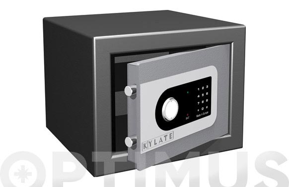 Apertura mediante teclado y llave. Puerta de 6 mm con 4 bulones y cuerpo de 2 mm. Medidas: Exteriores 38×48,5×35 cm, interiores 37,5x48x28 cm. (HxAxF) 26 kg. 50 L. Provista de serie con cuatro orificios en la base y tres en el fondo para su fijación al suelo y pared respectivamente.