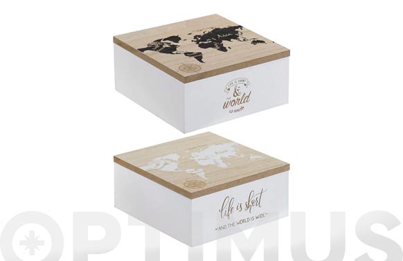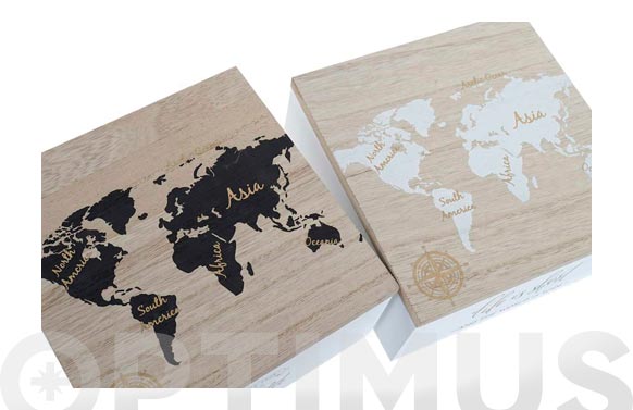 CAJA MADERA MULTIUSOS – 15 X 15 X 7 CM MAPA MUNDI SURTIDO