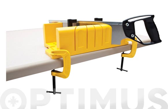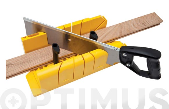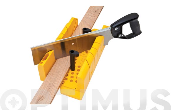 Cuerpo de materia sintética muy resistente. Para cortes con ángulos a45‡, 90‡ y 22,5‡. Suministrado con un serrucho de 355 mm, de acabdo fino (13DPP) y dentado HP.