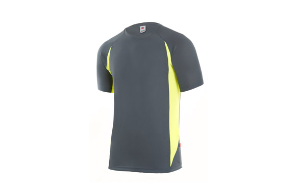 CAMISETA TECNICA POLIESTER GRIS / AMARILLO FLUOR