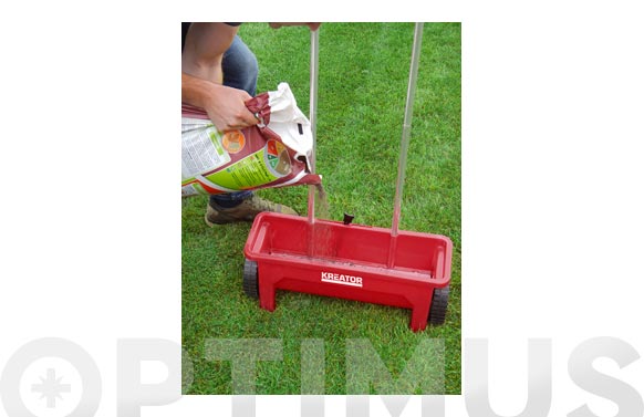 Capacidad del contenedor 12 litros. Anchura de trabajo 45 cm. Ideal para esparcir desde abono hasta semilla en el jardín.