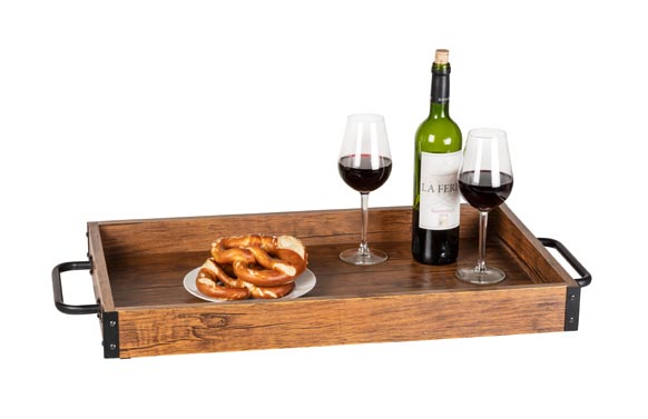 Rústico. 3 estantes y cuatro ruedas con 2 frenos para estacionarlo. Estante superior desmontable y utilizable como bandeja. Incluido soporte para botellas y copas. 80 x 40 x 89,5 cm.