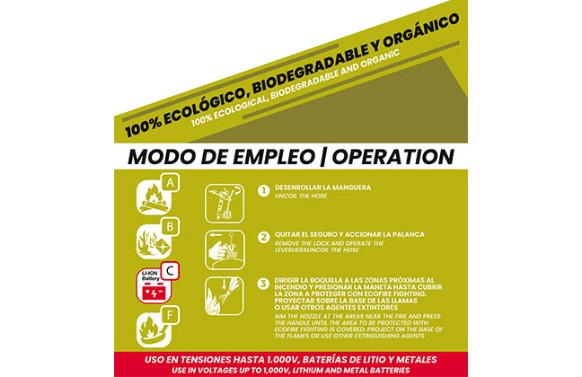 Equipo de proteccion contra incendios con capacidad de 40 litros de Simonrack Ecofire Fighting. unico producto certificado que evita la propagacion de fuego de bateria. Con un peso bruto de 81,96 kg y unas dimensiones (alto x ancho x fondo) de 1.130 x 560 x 450 mm. Es facil de transportar y constituye la mejor alternativa a los extintores convencionales, ya que estos son retardantes del fuego, mientras que SEF actua como bloqueante y encapsula el humo, impidiendo la emision de cualquier gas toxico. Evita la transmision del calor y la propagacion del incendio. Evita la reignicion. Gran capacidad de extincion de baterias de litio por inmersion, no reacciona con el litio. Gran capacidad de extincion de fuegos generados por grasas y aceites. Apto para fuegos de metales (TIPO D). Ecologico, no es toxico, no bioacumulable, no corrosivo y biodegradable. Reduce la emision de humos y es inocuo para personas, animales y plantas. Longitud de disparo de 15 metros mas 5 metros de manguera.
