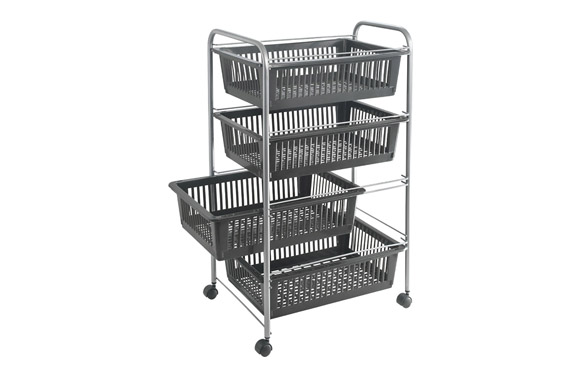 Carro multiuso 4 cesto. Con 4 cestos plástico PP extraíbles 46 X 35 X 78 cm. Con ruedas. Recubrimiento polytherm.