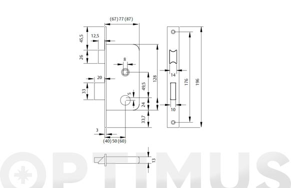 Cerradura de embutir para puertas de madera. Entrada de 60 mm. Distancia entre…