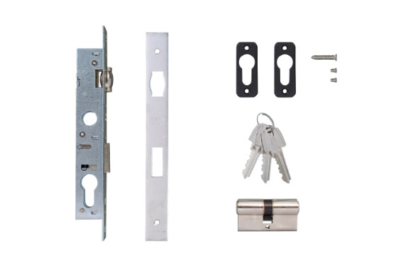 Cerradura de embutir para carpintería metálica. Entrada 13.5 mm. Picaporte de rodillo. Palanca deslizante. Cilindro de 60 mm. No incluye cerradero ni escudo. Frente zincado