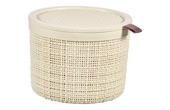 CESTA REDONDA CON TAPA JUTE 2L – BLANCO ROTO Ø17X12,5CM
