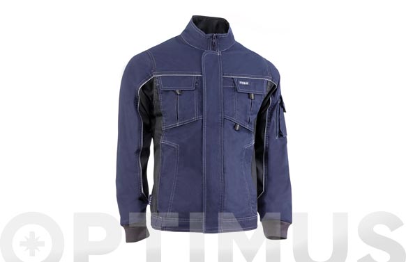Chaqueta multibolsillos bicolor. Para rodilleras, cierre de cremalleray botón, refuerzo extra en la parte trasera (zona de mayor desgaste).68% algodón, 30% poliéster y 2% elastano de 260 gr/m², tejido negro en 100% poliéster.