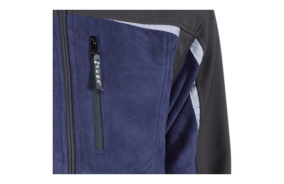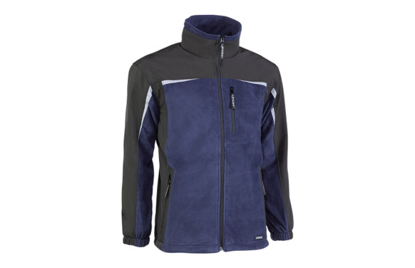 Chaqueta cortavientos con forro polar. Cierre frontal con cremallera ypuño elástico. Tres bolsillos frontales y dos interiores con cierre de cremallera. 100% poliéster de 280 gr/m². (tejido forro polar) y 92%poliéster / 8% elastano (tejido cortavientos). Forro interior de 100%poliéster.