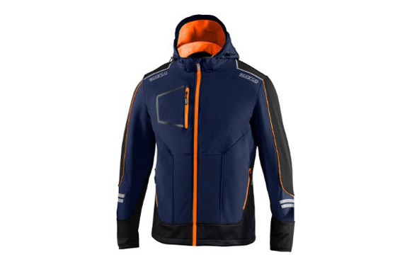 Peso 330gr/m2. Composición exterior 93% poliéster, 7 % spandex. Interior 100% poliéster ( forro polar). Especificaciones: Inserciones con refuerzos en hombros y mangas en material antiabrasión. Tiras refelectantes de alta visibilidad en las mangas. Capucha con doble ajuste, desmontable y plegable. Puños y bajos elásticos.