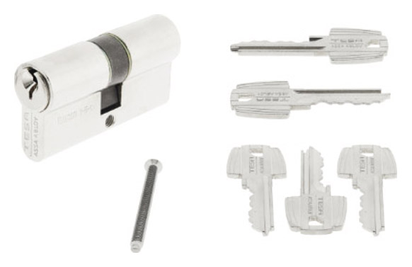 El TE5 es un cilindro de llave de serreta y cinco pitones, de la gamabásica de cilindros de TESA. Se caracteriza por una gran fiabilidad yrobustez en el uso y es una solución adecuada para accesos comunes. Este cilindro ofrece una capacidad de amaestramiento adecuada para pequeñas y medianas instalaciones. Además, dispone de una amplia gama de medidas y modelos, cubriendo así, la reposición de cilindros para cerraduras como la 2000, 56-125, etc. El cilindro TE5 de TESA se sirve contres llaves de hierro niquelado y esta certificado según la norma EN-1303.