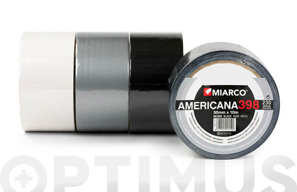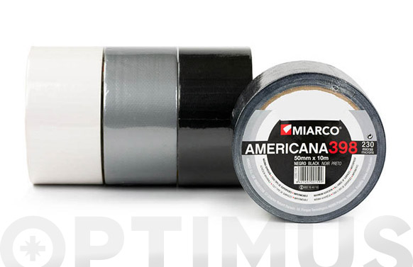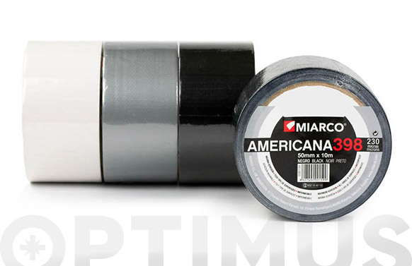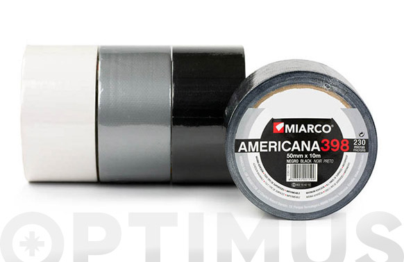 La cinta americana 398 de MIARCO es una cinta adhesiva de tela recubierta de polietileno con adhesivo blanco de caucho natural. Esta es unacinta adhesiva duradera y adaptable a cualquier tipo de superficie, con una buena resistencia y adhesión, tanto en interior como en exterior. Gracias a su composición, es una cinta muy polivalente, usada en infinidad de aplicaciones: enmascarar, sellar, embalar, atar y muchos más. Esta cinta adhesiva está indicada tanto para uso profesional como enproyectos de bricolaje. A nivel industrial se usa principalmente en el sellado de tuberías o conductos. Espesor 0.23 mm. Adhesivo Caucho natural. Cinta de polietileno con refuerzo de tejido. Temperatura: 40C a+95C.