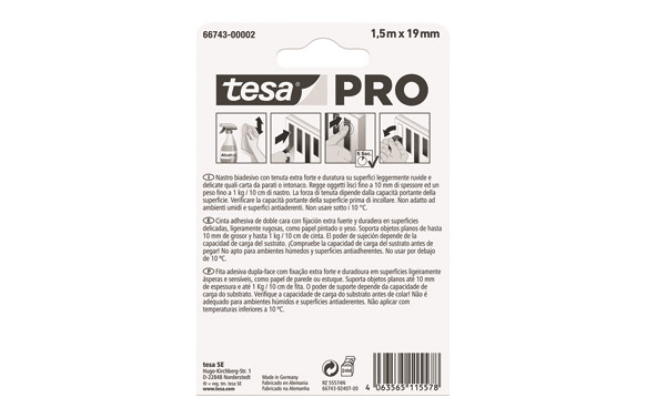 CINTA DOBLE CARA MOUNTING PRO PARED PAPEL PINTADO PERMANENTE – 1,5 M X 19 MM