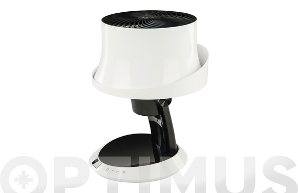 Circulador de aire compacto para obtener una mayor proyección de aire.12 velocidades de ventilación. Cabezal inclinable de 0 a 90º. MotorDC (de corriente continua) muy silencioso, de consumo muy reducido 30W. Temporizador de 15 horas para programar la conexión y desconexión.Control remoto magnético para ubicar en la base del ventilador. Protector térmica del motor por sobre-intensidad. Asa para el transporte.