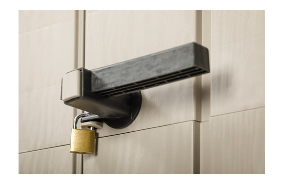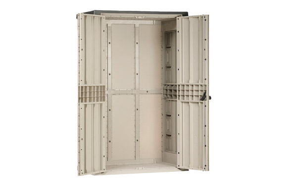 COBERTIZO DE RESINA ALTO. Con 2 puertas, color gris/antracita. Capacidad 1.670 l. Mdedidas 130×75,6 cm y alto 206 cm. Apto para poner candado. Con tratamiento anti UV.