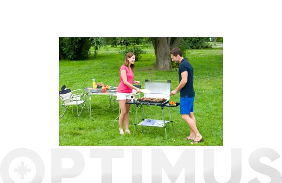 Potencia: 4400W (2200W/Quemador) Consumo de gas: 310 g/h (155 g/h porquemador) Innovadores quemadores “Xcelerate” 2 parrillas extra¡bles. Permiten cocinar y asar a la parrilla simultáneamente. Patas telescópicas y bandeja inferior. Encendido: Piezo